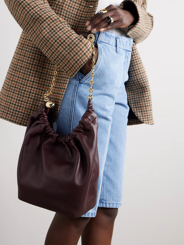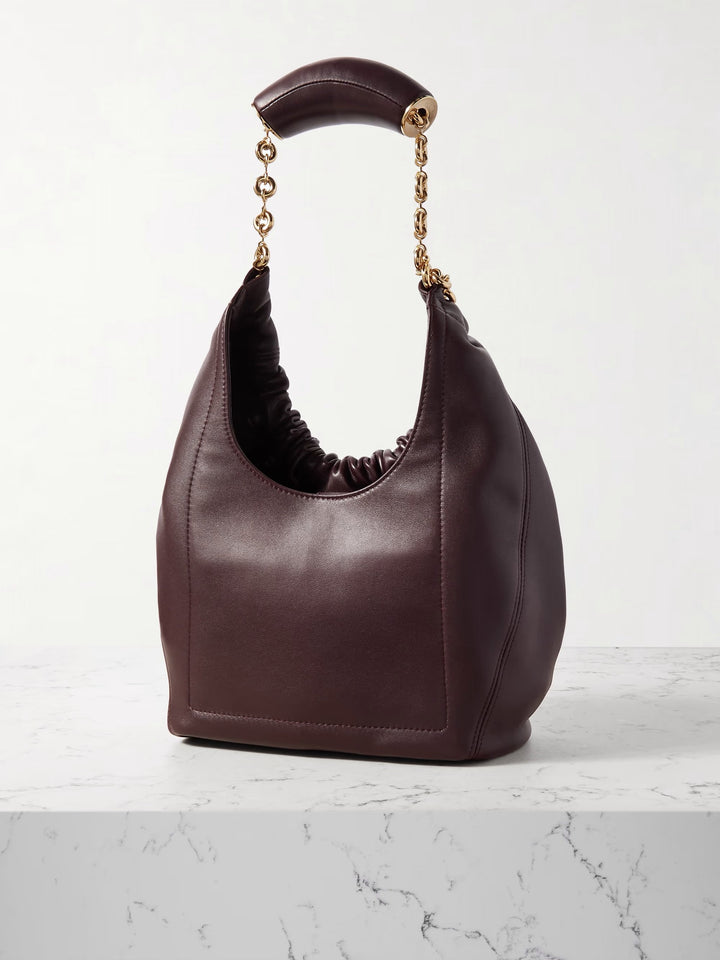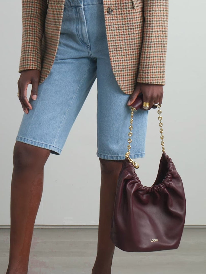 Sonbahar ‘23 defilesinde ilk kez görücüye çıkan çantalar, markanın arşivlerindeki 70'ler stilinden ilham almıştır. Yumuşacık deriden üretilen bu küçük 'Squeeze’ modeli, üst kısmında büzgülü bir tasarıma sahiptir ve altın rengi zincirli kavisli bir sapı vardır. İçinde telefonunuz veya anahtarlarınız için fermuarlı bir cep bulunmaktadır.