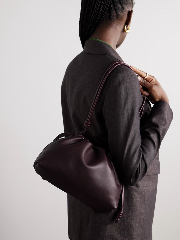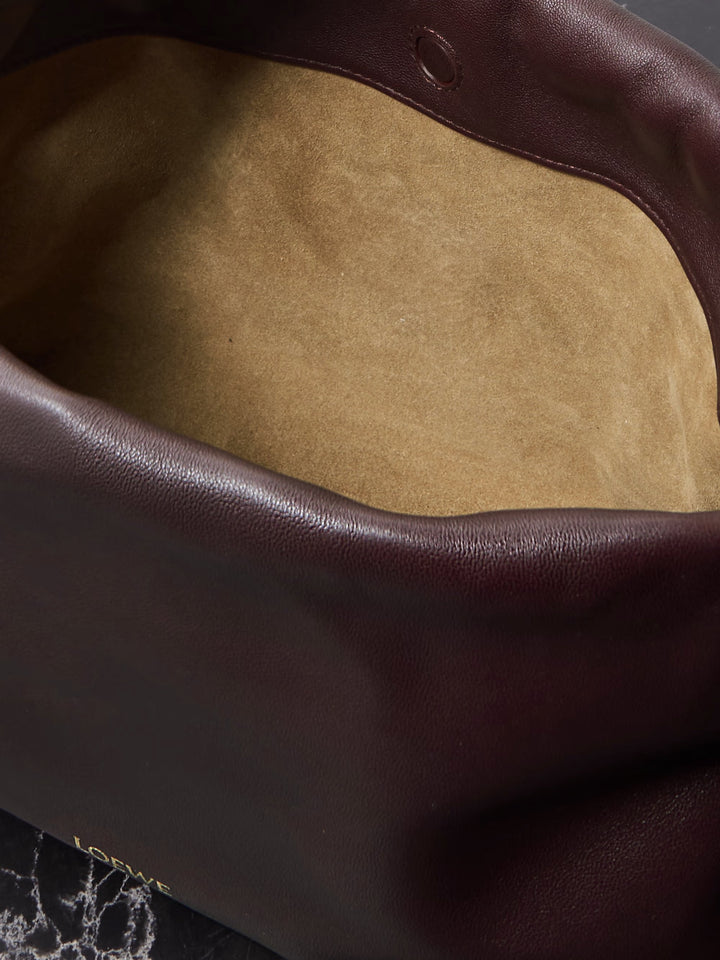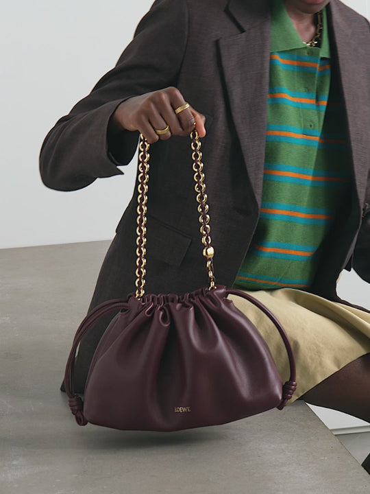 ‘Flamenco’ clutch çantasını, kullanılmadığında mücevher gibi sarkan kalın altın zincir askıyla güncelledik - bu askı çıkarılabilir. İspanya'da deriden üretilen bu çanta, son derece yumuşak ve büzgülü üst kısmı ile dikkat çekiyor.
