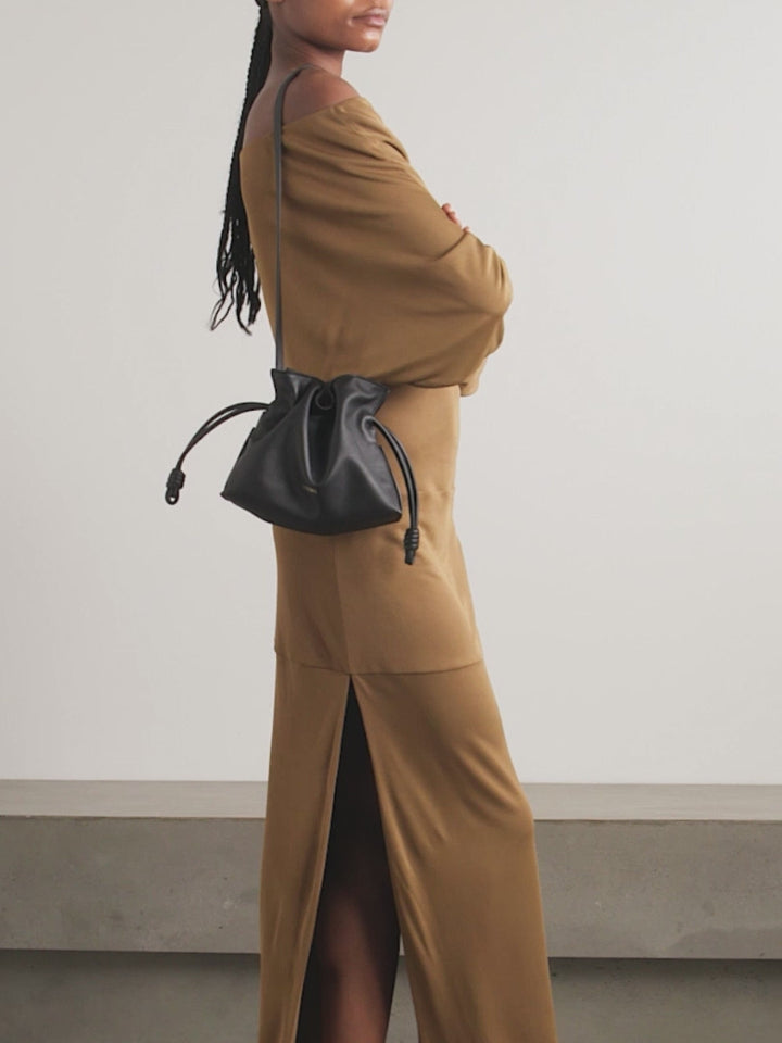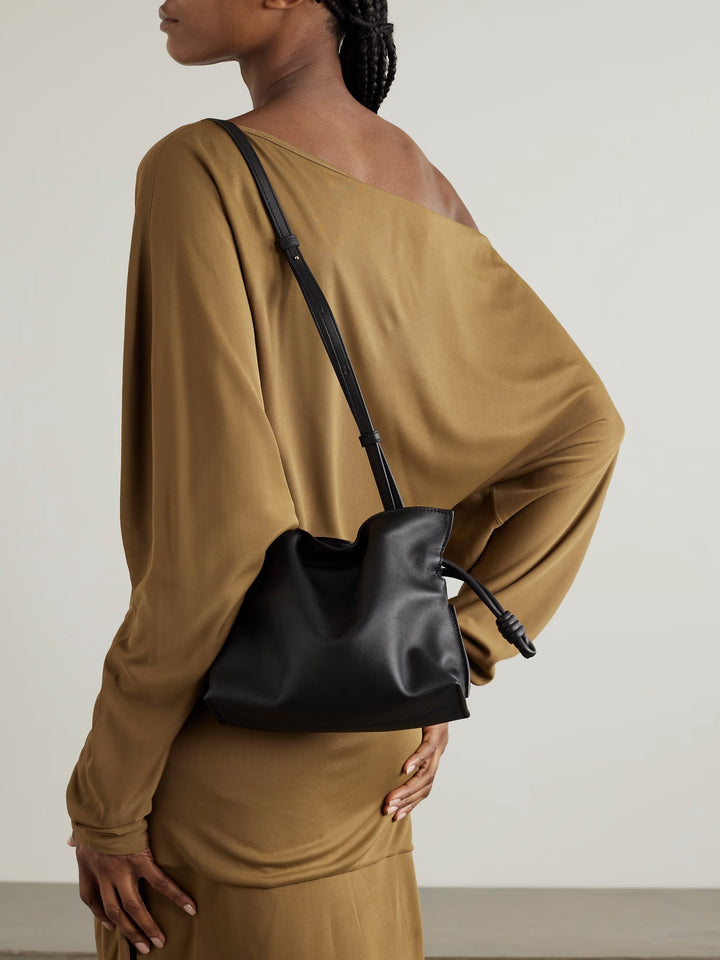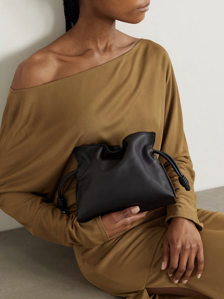 Gevşek kesimli ‘Flamenco’ clutch çantası bu sezon sahip olunması gereken çantalardan biri ve biz özellikle bu küçültülmüş mini versiyonunu çok beğendik. İspanya'da esnek deriden üretilen ve süet astarlı bu çanta, düğümlü büzme ipleriyle süslenmiş. İsteğe bağlı askıyı takarak ellerinizi serbest bırakabilir ve telefonunuzu ve cüzdanınızı çantanın içine koyabilirsiniz.