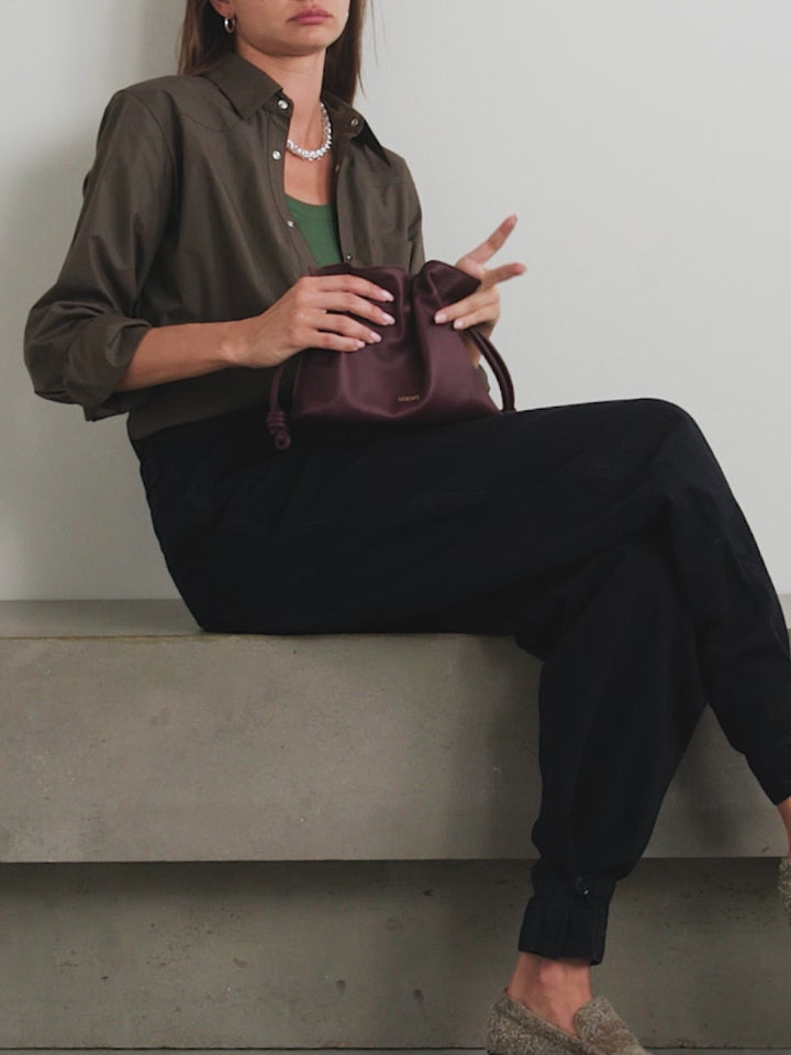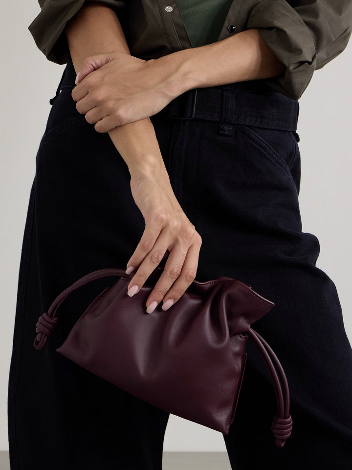 Gevşek kesimli ‘Flamenco’ clutch çantası bu sezon sahip olunması gereken çantalardan biri ve biz özellikle bu küçültülmüş mini versiyonunu çok beğendik. İspanya'da esnek deriden üretilen ve süet astarlı bu çanta, düğümlü büzme ipleriyle süslenmiş. İsteğe bağlı askıyı takarak ellerinizi serbest bırakabilir ve telefonunuzu ve cüzdanınızı çantanın içine koyabilirsiniz.