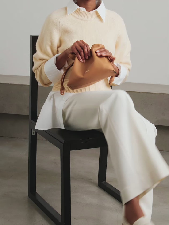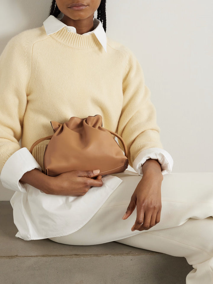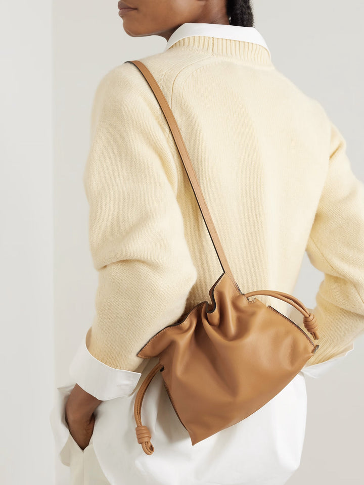 Gevşek kesimli ‘Flamenco’ clutch çantası bu sezon sahip olunması gereken çantalardan biri ve biz özellikle bu küçültülmüş mini versiyonunu çok beğendik. İspanya'da esnek deriden üretilen ve süet astarlı bu çanta, düğümlü büzme ipleriyle süslenmiş. İsteğe bağlı askıyı takarak ellerinizi serbest bırakabilir ve telefonunuzu ve cüzdanınızı çantanın içine koyabilirsiniz.