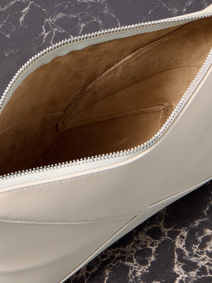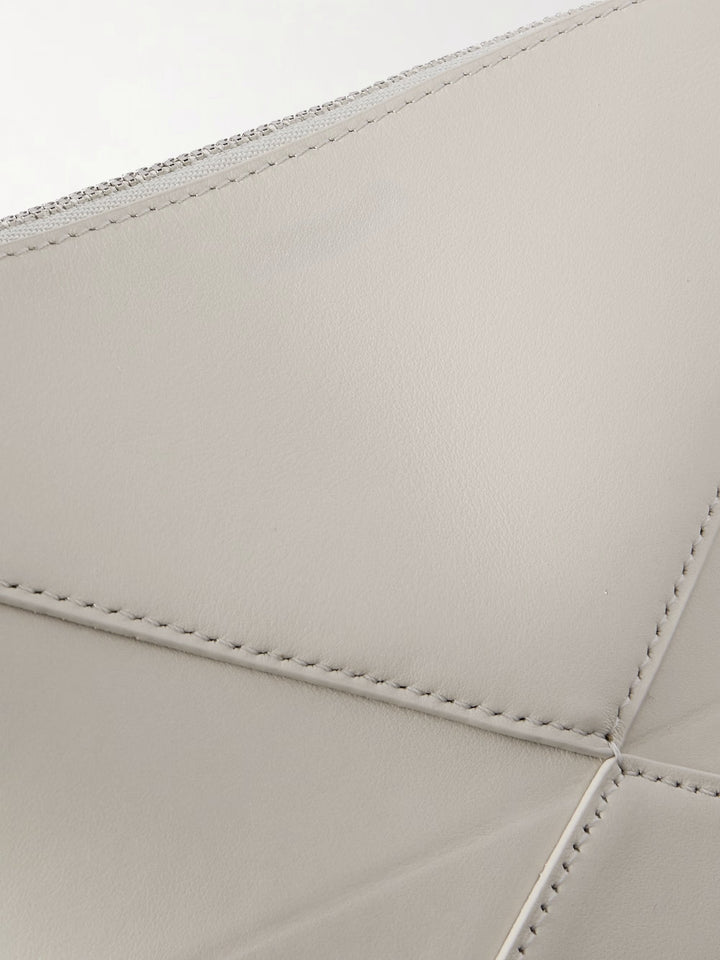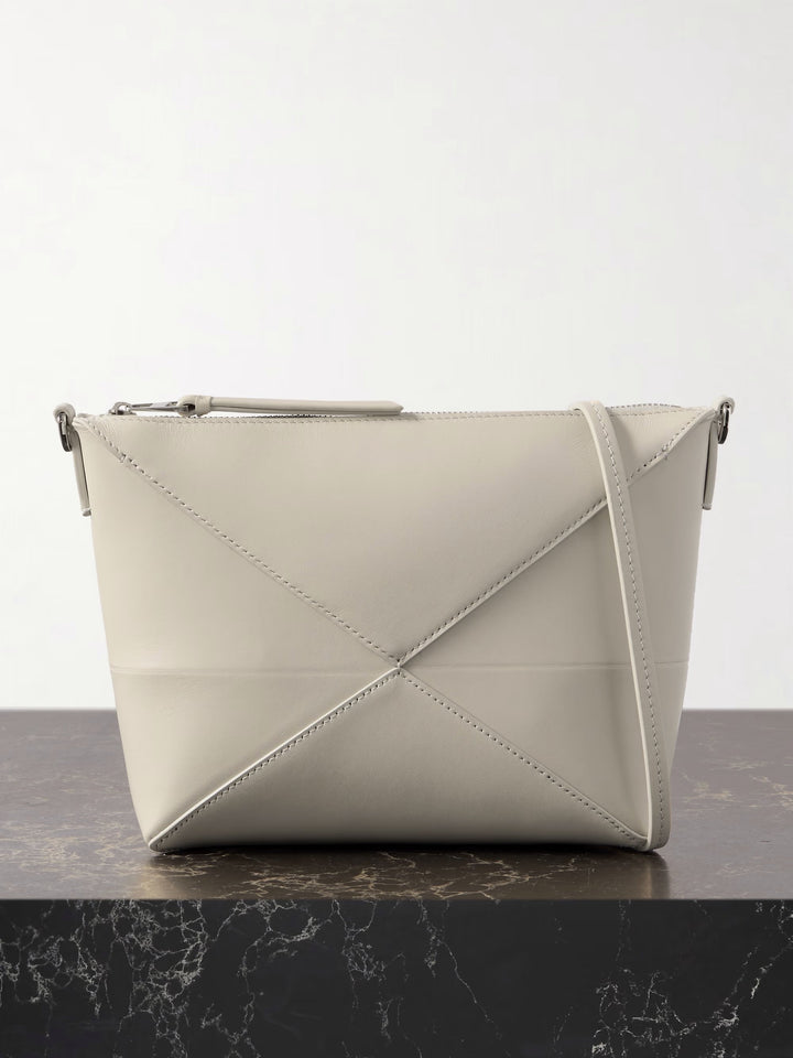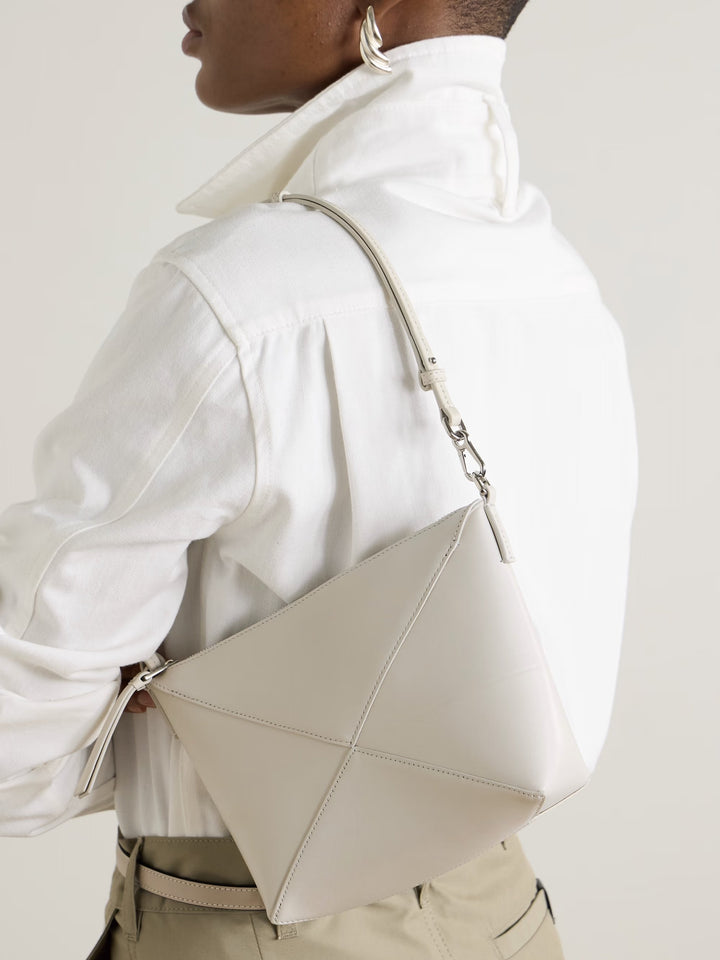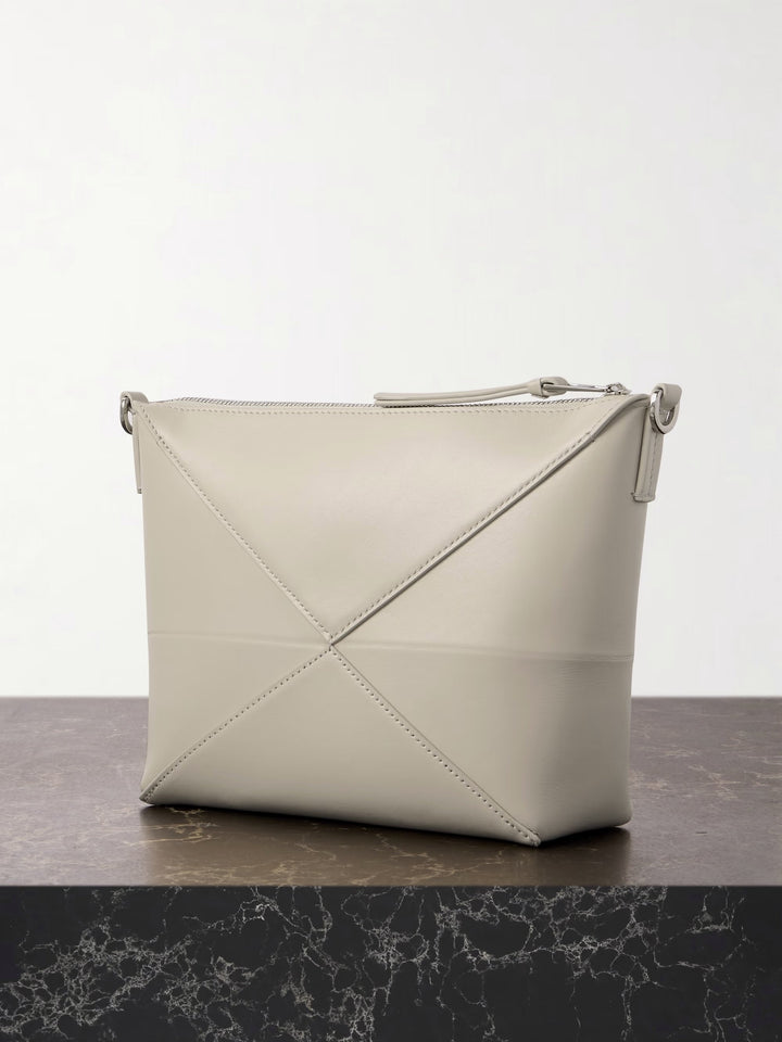 ‘Puzzle’ clutch çantası, katlanıp saklanabilen origami benzeri yapısı sayesinde seyahatler için mükemmeldir. Yumuşak süet astarlı deriden üretilen bu çanta, telefon, cüzdan, güneş gözlüğü ve kozmetik ürünleri gibi temel eşyaları kolayca içine sığdırır.
