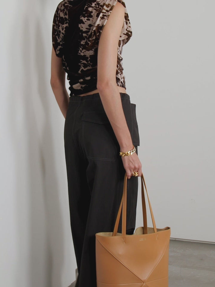 ‘Puzzle’ çantaları hala havalı ve çekici. Bu orta boy tote çanta, yumuşak deriden üretilmiş ve ikonik tasarımının origami tarzı kıvrımlarına sahip, bu da çantayı kolayca katlamayı sağlıyor. Üst sapları pürüzsüz ve esnek, süet iç kısmı ise cüzdanınız, defteriniz ve kozmetik çantanız için yeterli alana sahip.